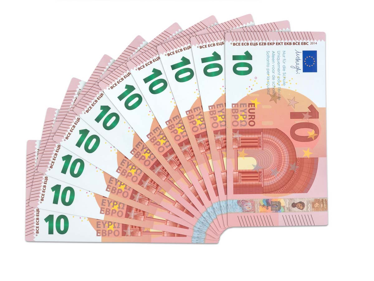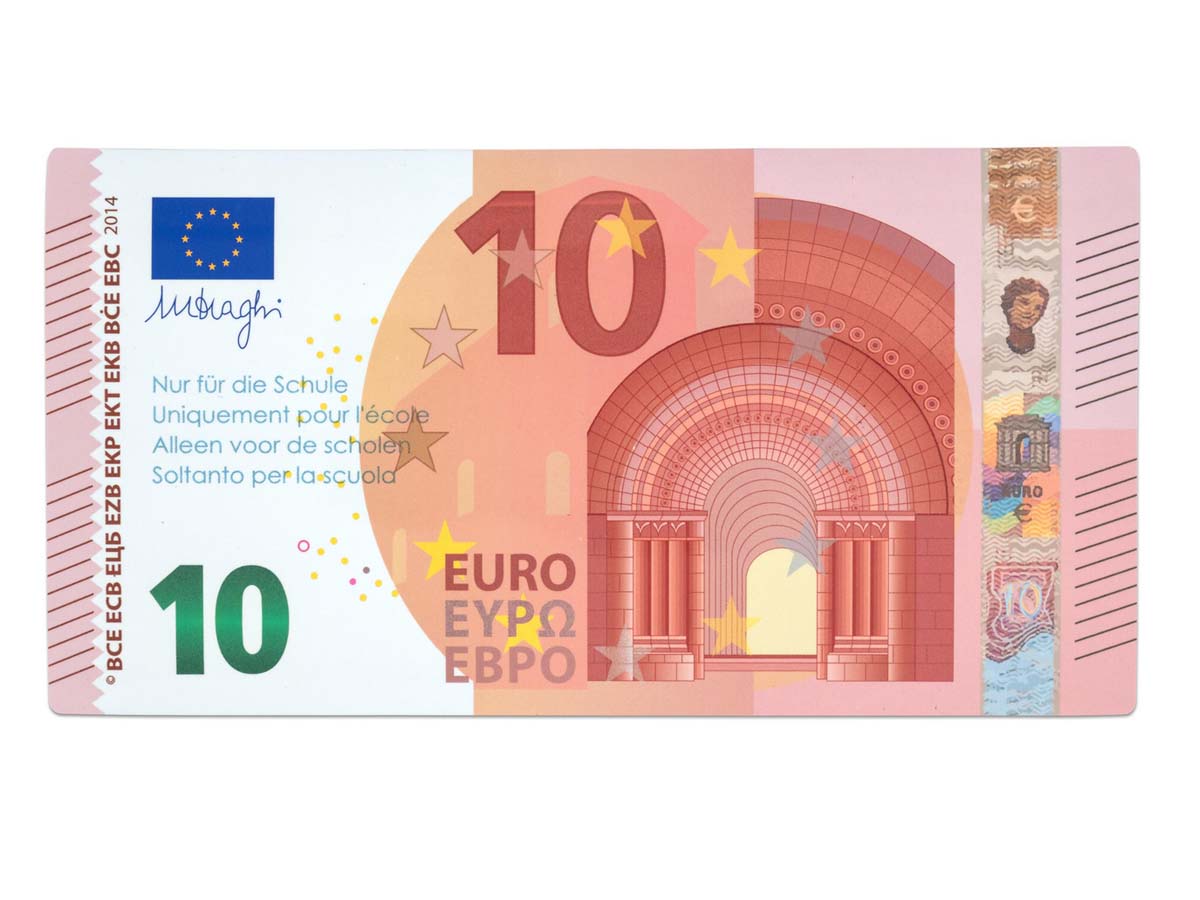Der neue 10 Euro-Schein als Ergänzung oder zum Austausch für Ihr Demo-Rechengeld.