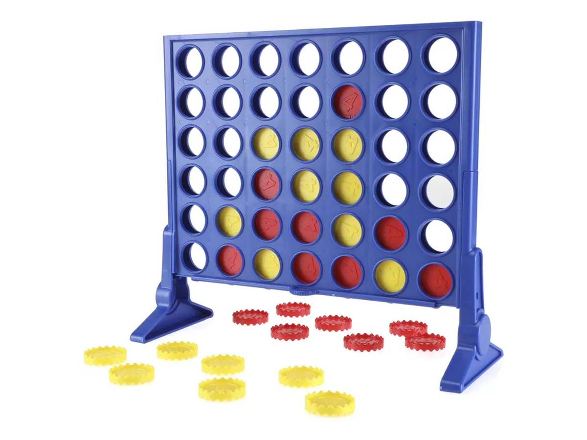 Hier ist strategisches Denken gefragt, wenn die Spieler taktisch klug den Gegner blockieren, um 4 Chips der eigenen Farbe in eine Reihe zu bringen.