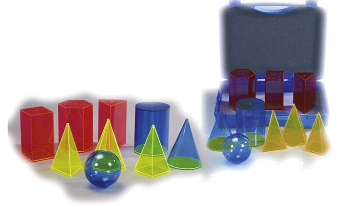 Stichworte: Modellsätze, Körper, Mathematik - Klasse 5 bis 12, 9-teiliger Satz Hohlkörper, farbig transparent, Hohlkörper