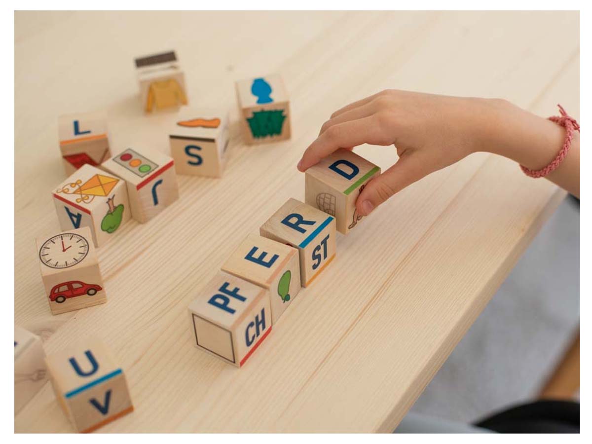 Inhalt: 26 bedruckte Holzwürfel, Begleitheft (59 S.)