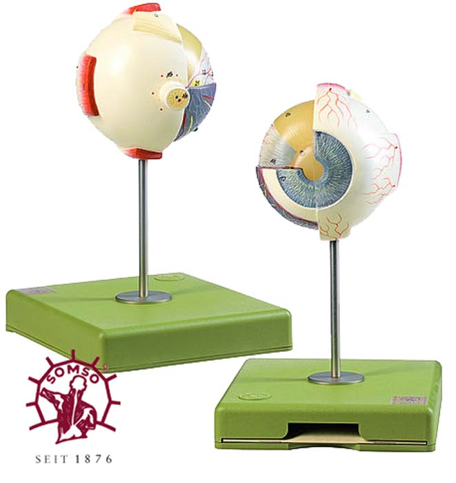 Das unzerlegbare Augenmodell zeigt in verschiedenen Schnittebenen anschaulich die Anatomie des Augapfels.