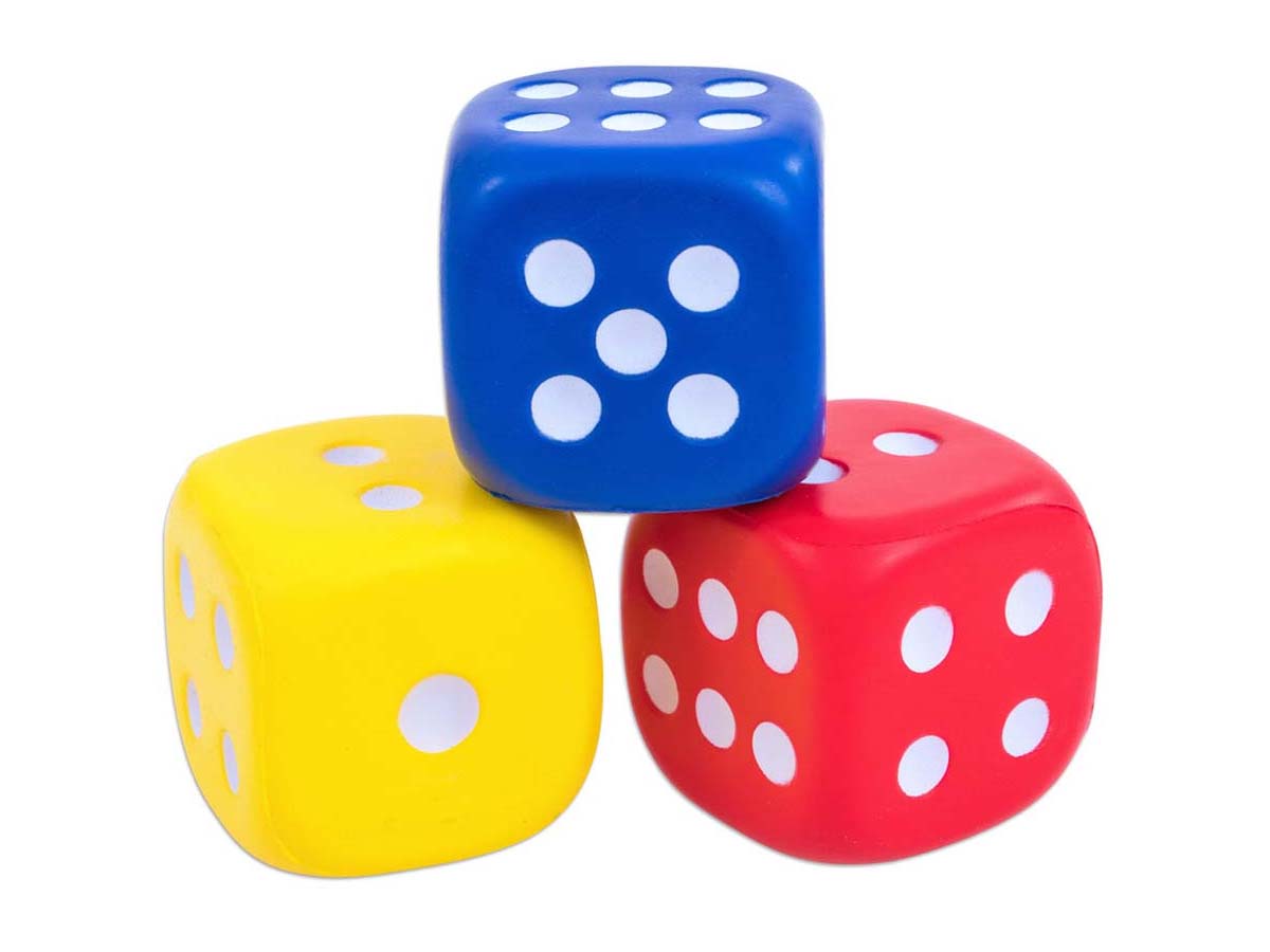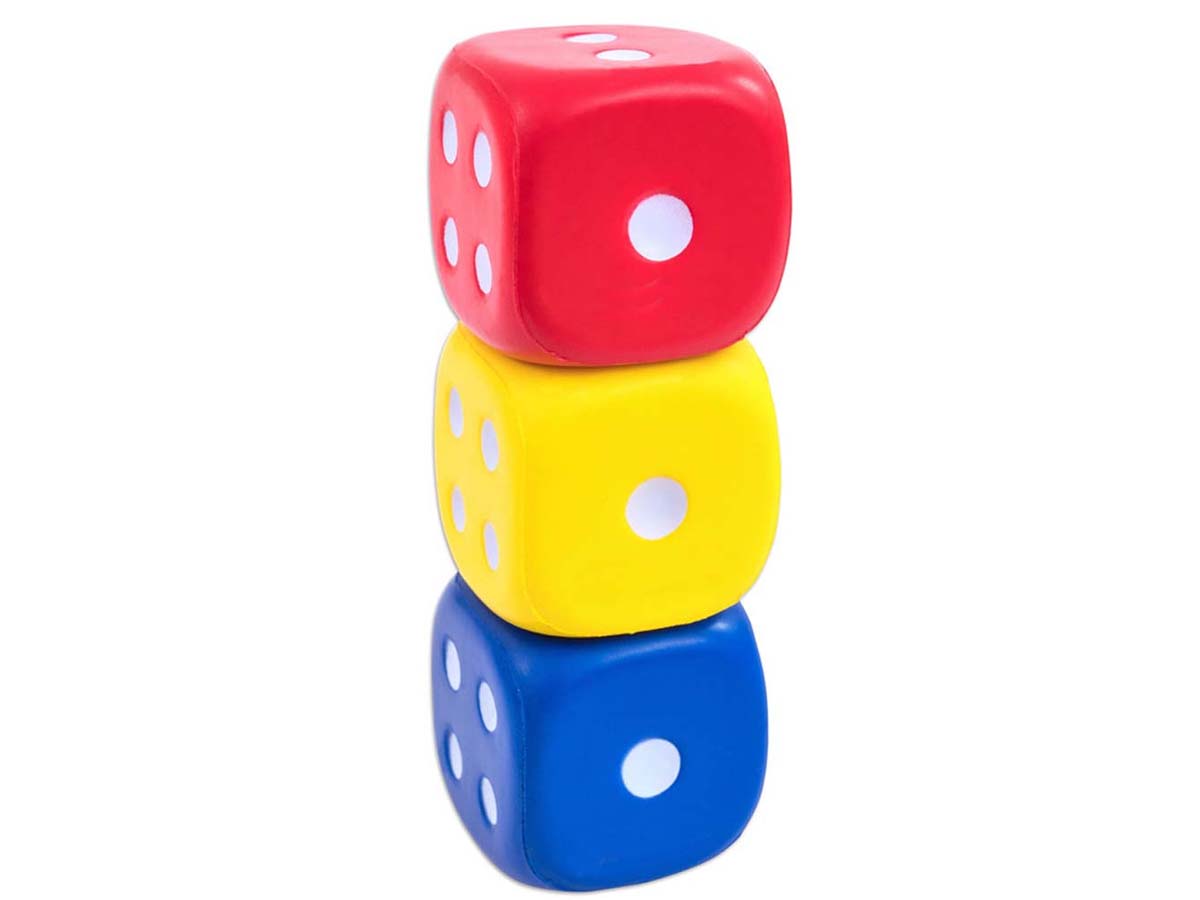 Augenwürfel aus Schaumstoff, 3 Stück (rot, blau, gelb)