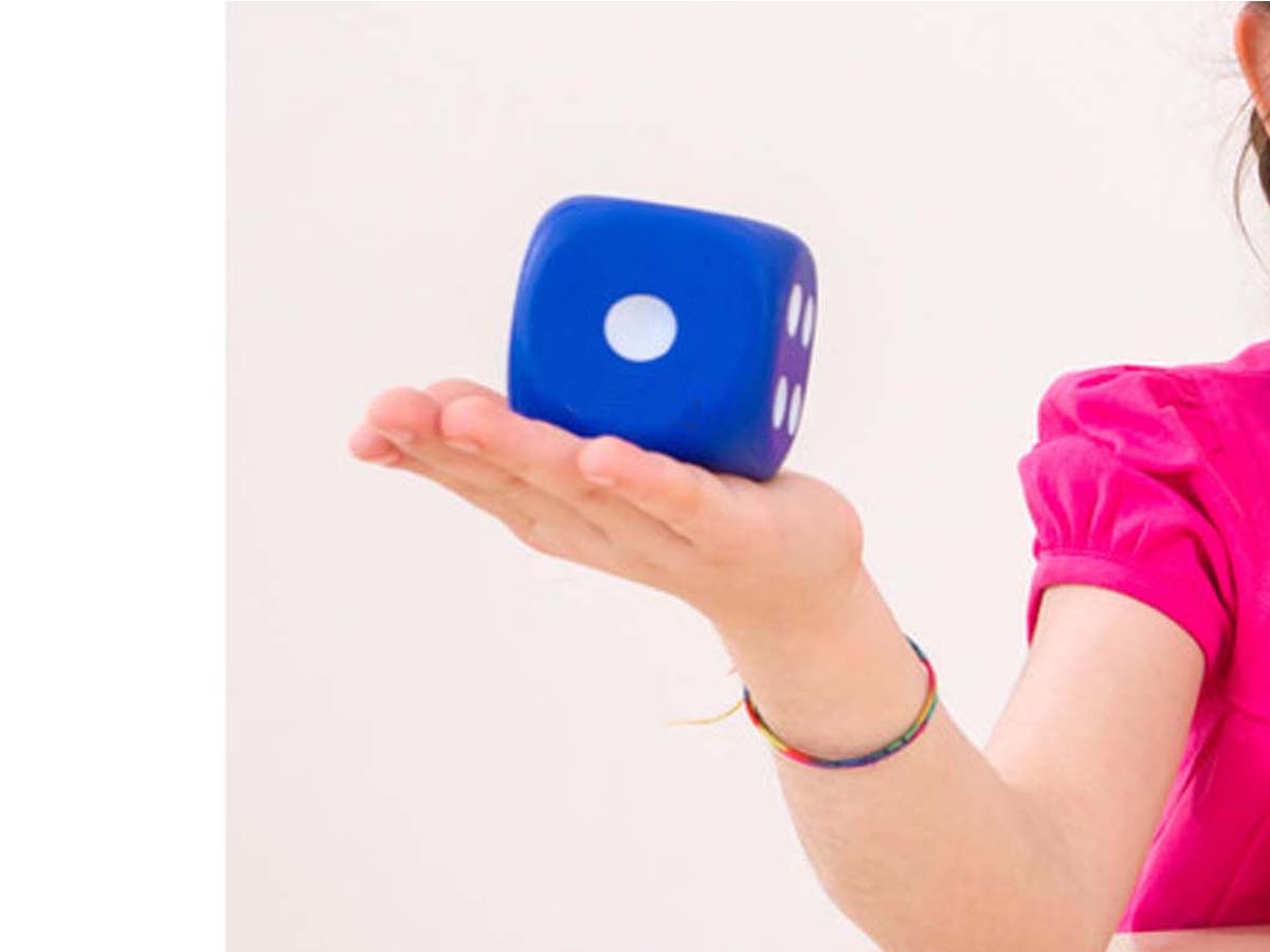 Die Kinder lernen spielerisch, auf dem Tisch zu würfeln. Speziell die Größe der Augen erleichtert das Erkennen. D