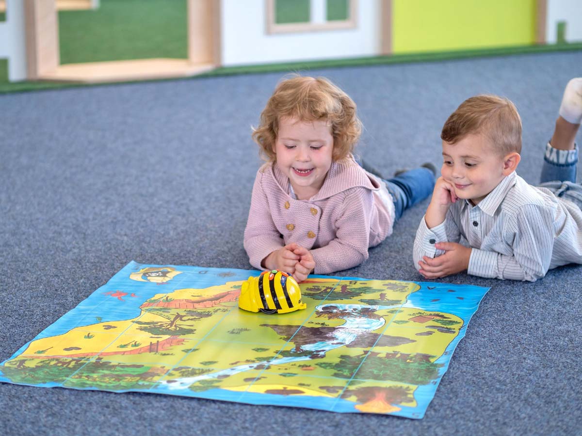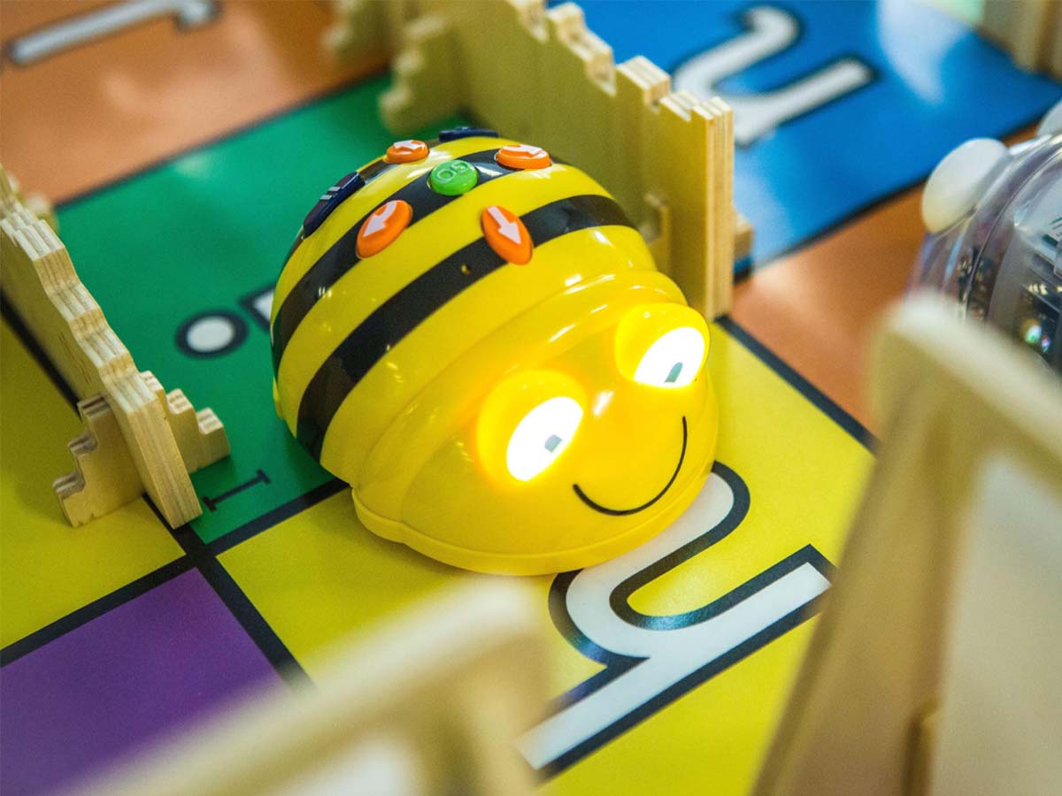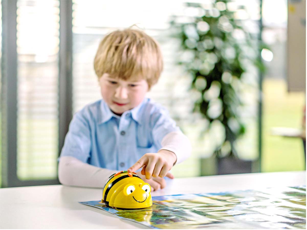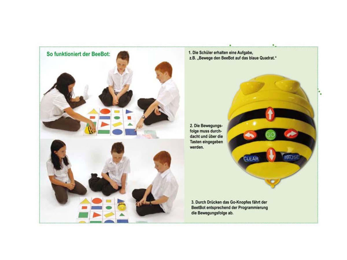 Der Bee-Bot ist ein kleiner Roboter, der sich mit Hilfe von Tasten programmieren lässt und das analytische und vorausschauende Denken sowie die Problemlösekompetenz der Kinder auf spielerische Weise fördern soll.