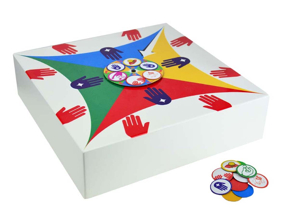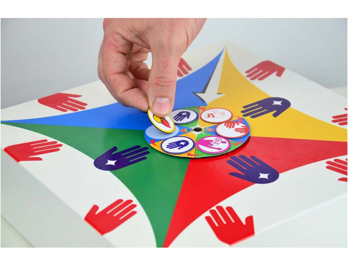 Das Spielbrett ist in vier farbige Felder unterteilt, so dass bis zu vier Spieler gleichzeitig trommeln können. Auf jedes Feld sind eine blaue und zwei rote Hände gedruckt, welche die zwei Trommelarten (Bass und Snare) kennzeichnen. Zusätzlich zeigt ein weißer Pfeil zur Mitte hin auf eine Drehscheibe. Diese dient als „Dirigent“. Auf die Scheibe werden sechs Karten gelegt mit verschiedenen Aktionen, wie zum Beispiel „Bass“ oder „Schnipsen“. Nun wird die Scheibe gedreht; kommt sie zum Stehen, zeigt der Pfeil auf die auszuführende Aktion.