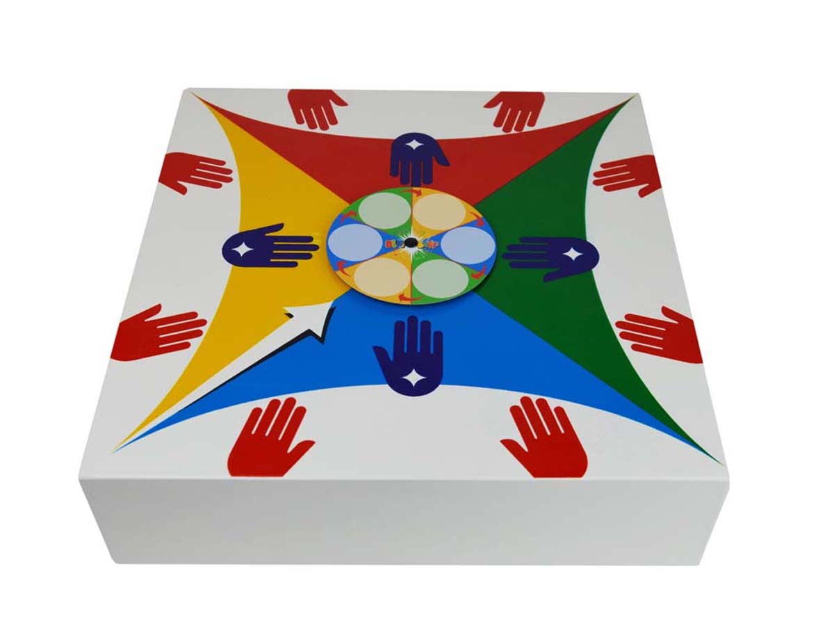 Der Dirigent von Biff Baff ist eine Drehscheibe, die auf abwechslungsweise Art und Weise unterschiedliche Rhythmusfolgen anleitet.