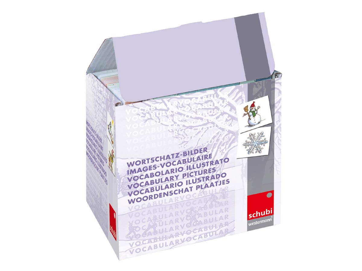 180 farbige Bildkarten (11 x 11 cm) zum ersten Grundwortschatz, mit Anleitung und Wörterverzeichnis in 6 Sprachen