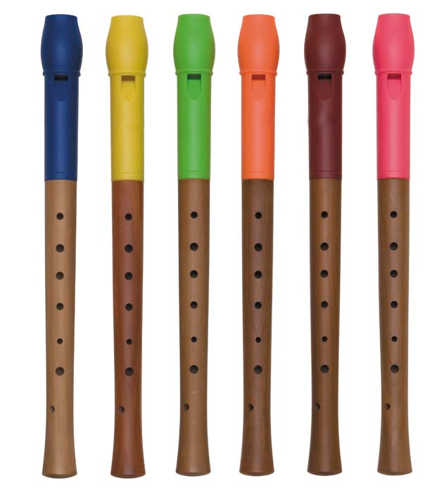 Blockflöte Junior, Holz/Kunststoff, Flötenkopf aus Kunststoff, 6-farbig sortiert, Unterteil aus Ahorn, Korkdichtung, mit Wischer und Grifftabelleund Korkfett.