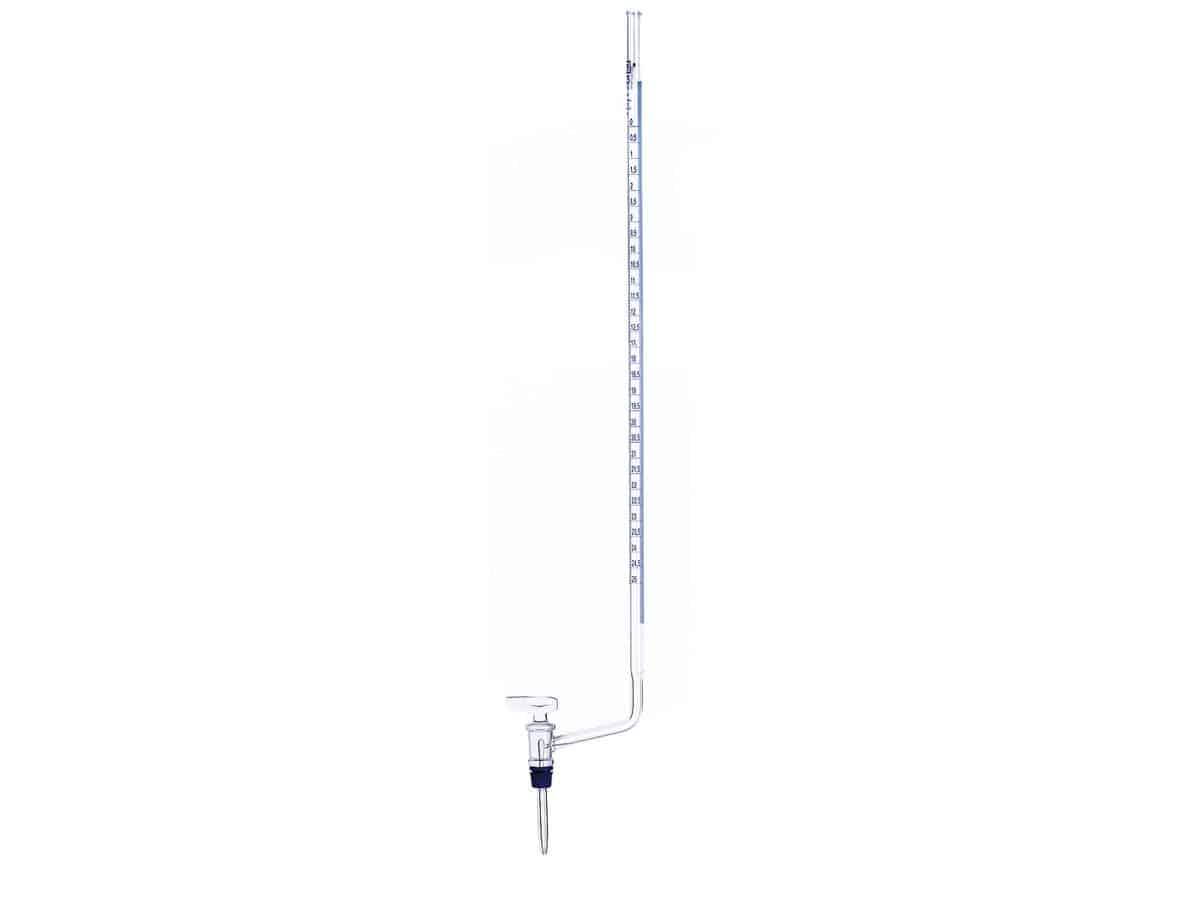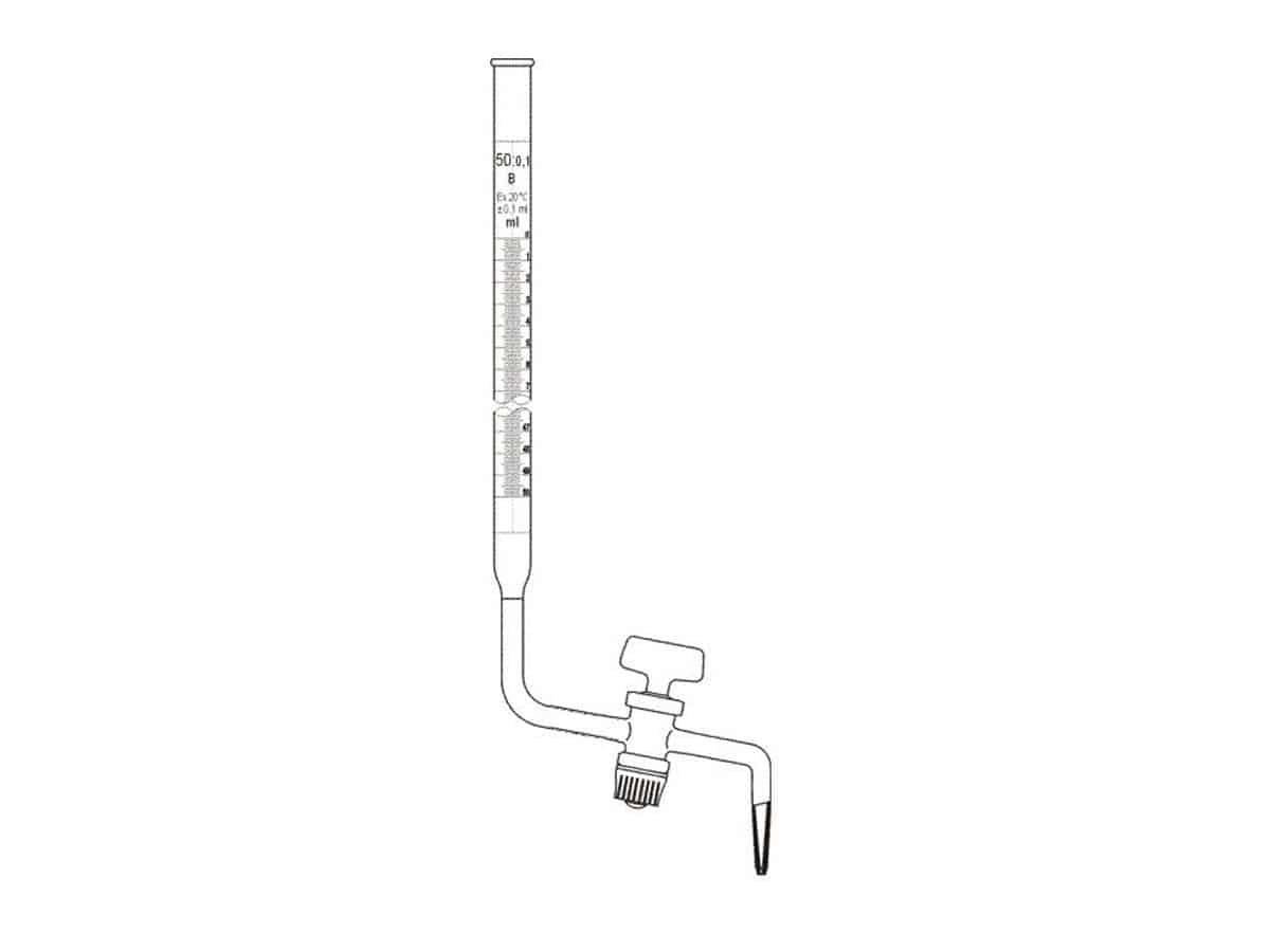 Bürette aus Borosilikatglas 3.3 mit seitlichen Hahn und mit Schellbachstreifen 50 ml, Teilung 0,1 ml, Klarglas. Klasse AF +/- 0,050 ml