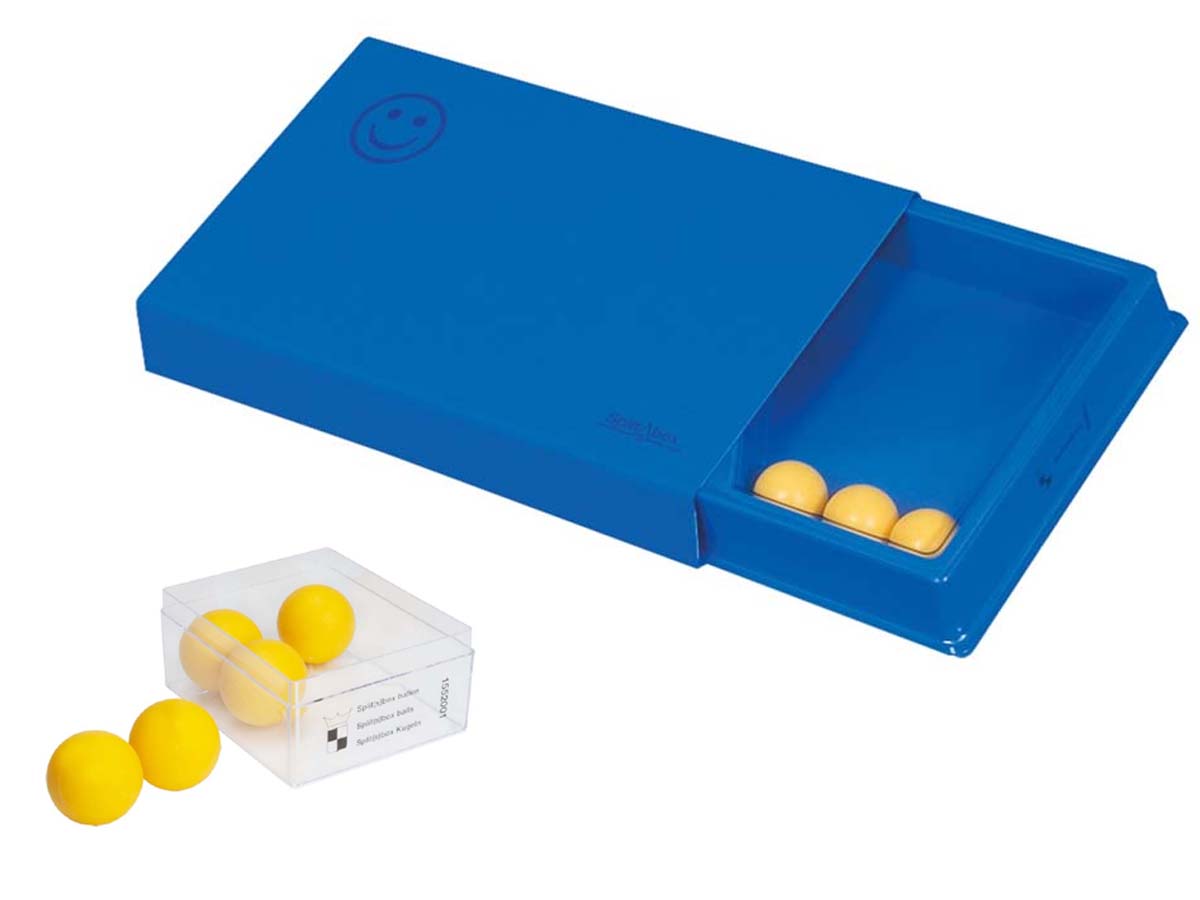 Ersatz Kugeln: Kunststoff Schachtel mit 5 gelben Kugeln, ø 34 mm: noch 2 Stück auf Lager