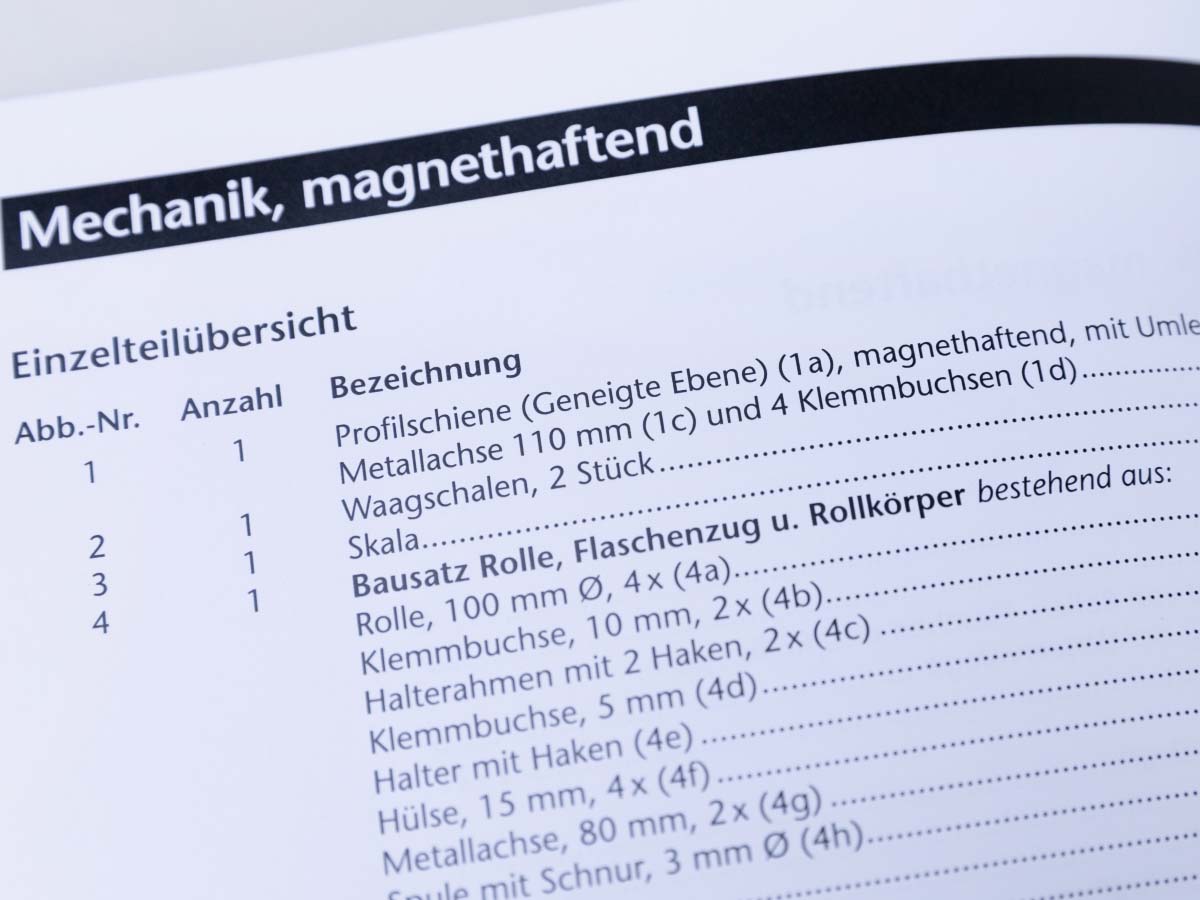 Heft im Lieferumfang enthalten: Versuchsanleitung „Mechanik, magnethaftend“