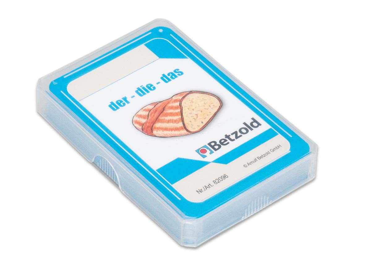 Bild-Wort-Karten zum Benennen des bestimmten Artikels. Die Vorderseite zeigt Bild und Wort, auf der Rückseite steht das Wort mit Artikel. Die Kinder sehen auf jeder Karte eine Aufgabe. Sie nennen das Ergebnis und werfen die Karte in den Zylinder. Im Zylinder wird die Karte gedreht. Unten erscheint die Karte wieder mit der Lösung nach oben. So zeigt der Zylinder schnell und schlau das richtige Ergebnis. Das begeistert Ihre Kinder und spornt zum Weitermachen an.