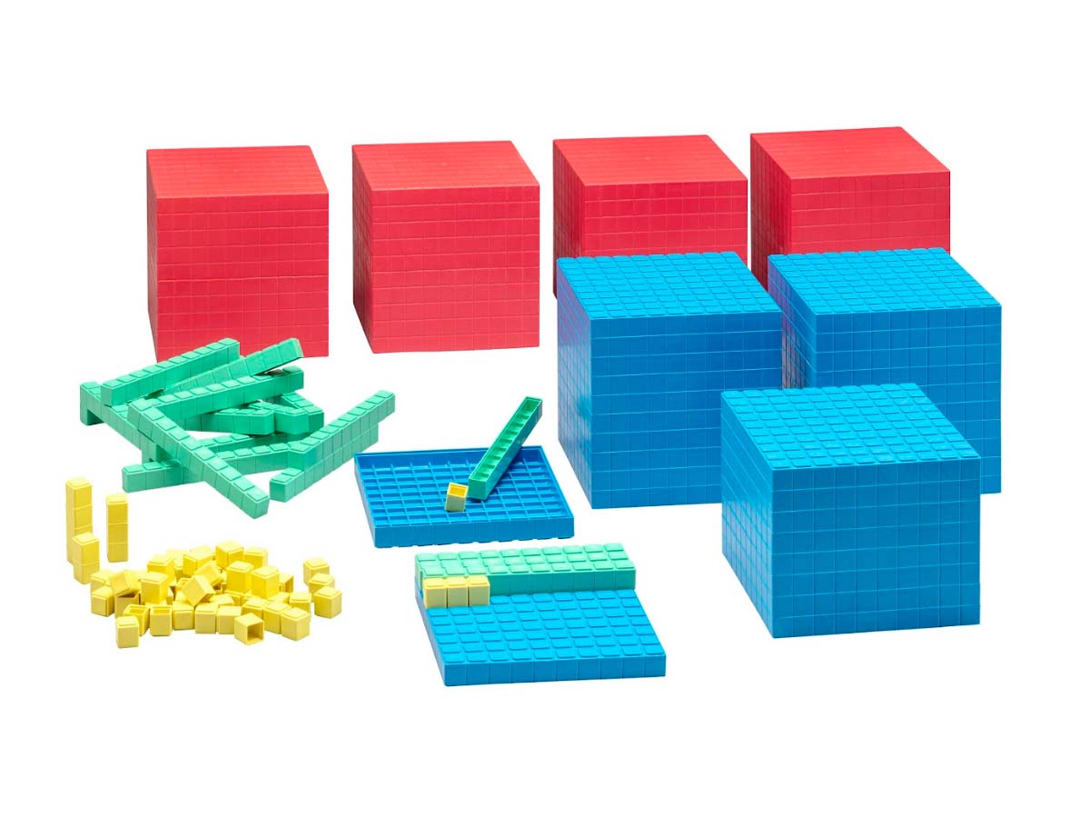 Mit diesem umfangreichen Gruppensatz können Kinder die Grundlagen des Dezimalsystems erlernen. Die einzelnen Elemente vermitteln anschaulich die Beziehung zwischen Einern, Zehnern, Hundertern und Tausendern. Um das Verhältnis der Einheit zum Ganzen zu verdeutlichen, verfügt jedes Grundelement über eine Zehntel-Markierung.