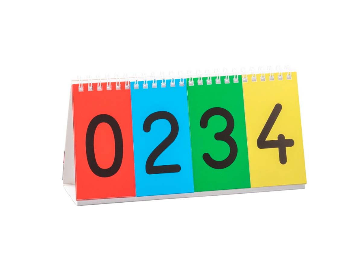 Das Ringbuch besteht aus jeweils 10 farbigen Kärtchen, die mit Zahlen 0 bis 9 bedruckt sind.
