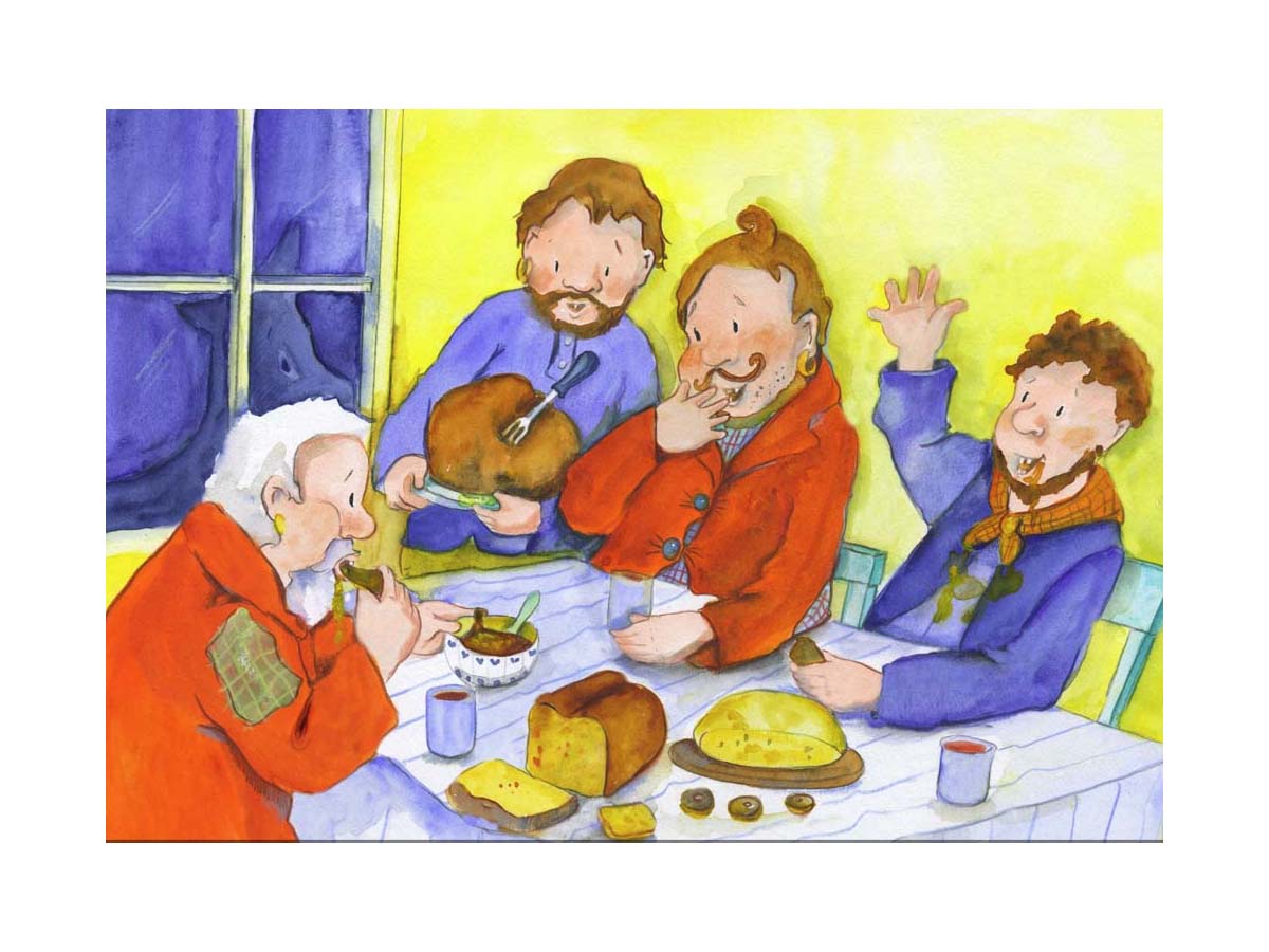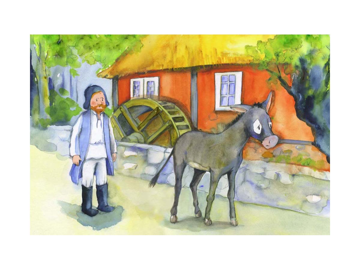 „Jeder ist seines Glückes Schmied.“ – Jahrelang hat der Esel für den Müller das Getreide geschleppt. Jetzt, da er alt und nicht mehr ganz so kräftig ist, will ihn der Meister loswerden. „Ich reiße aus und werde Stadtmusikant! In Bremen.“ Auf seiner Reise trifft er einen Hund, eine Katze und einen Hahn. Als es Nacht wird, entdecken die vier Freunde ein Häuschen im Wald. Als sie merken, dass darin Räubern wohnen, verjagen sie die Bande und ziehen kurzerhand selbst dort ein …