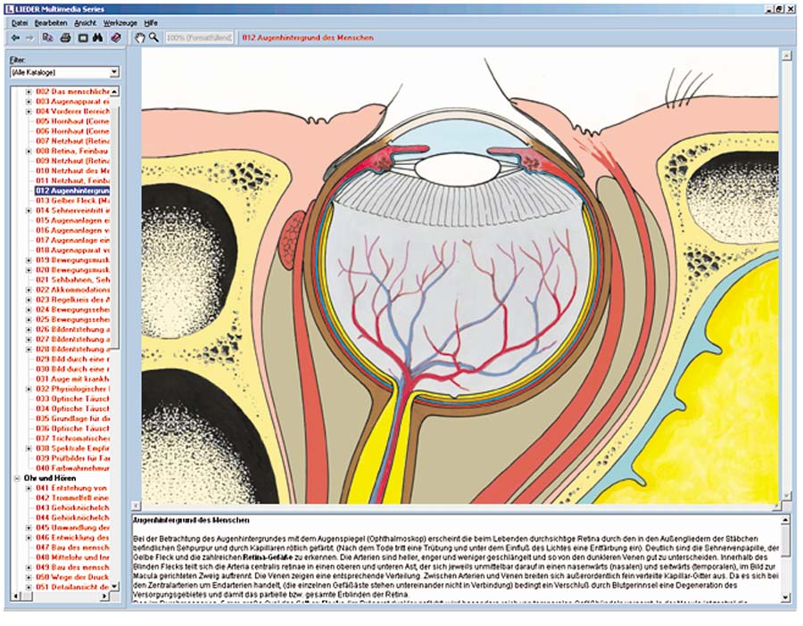 Bau des Auges und der Netzhaut. Akkommodation und Adaptation. Bildentstehung, Bewegungssehen, räumliches Sehen.