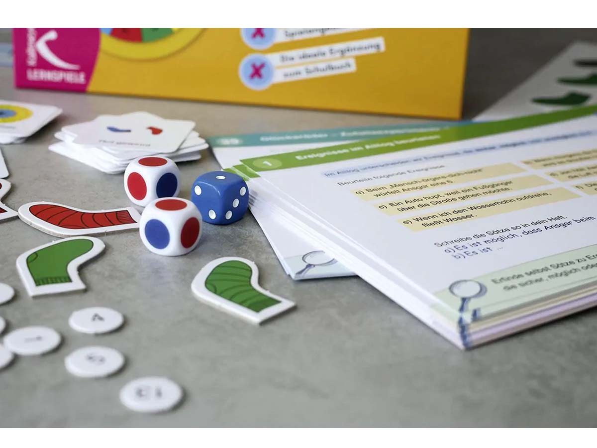 – verschiedene Farb- und Spielwürfel, 4 Spielfiguren