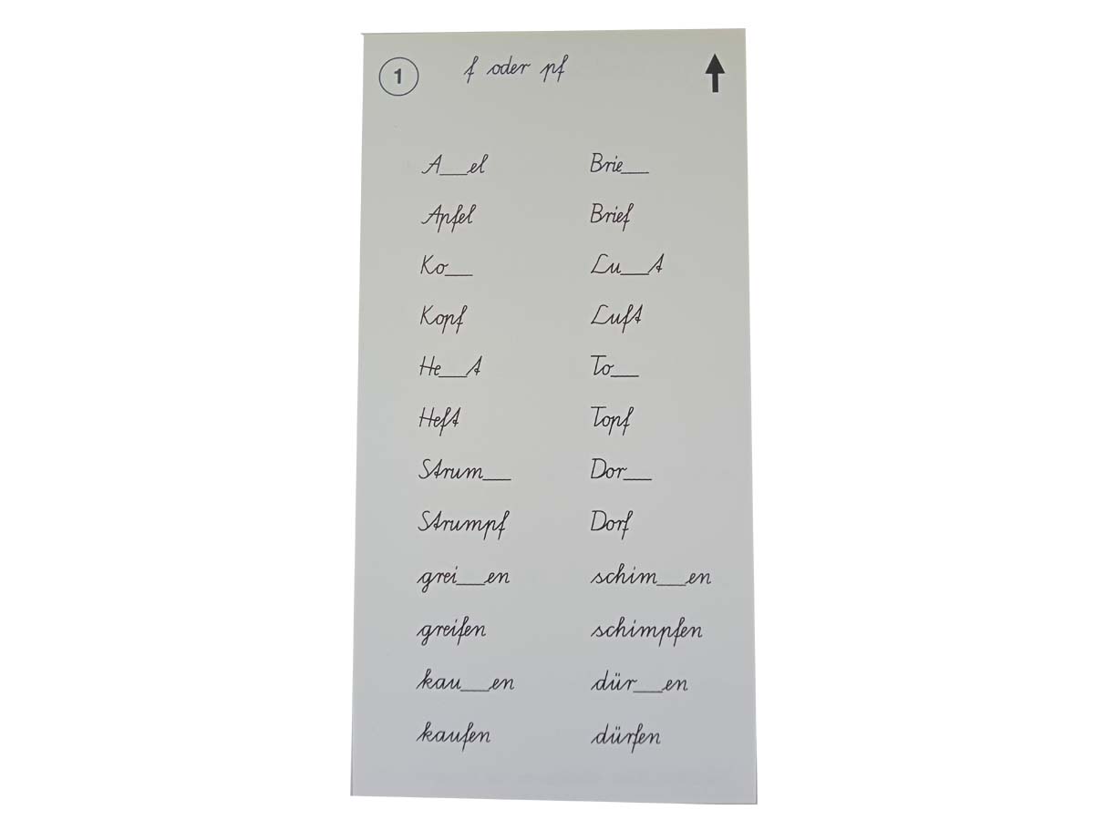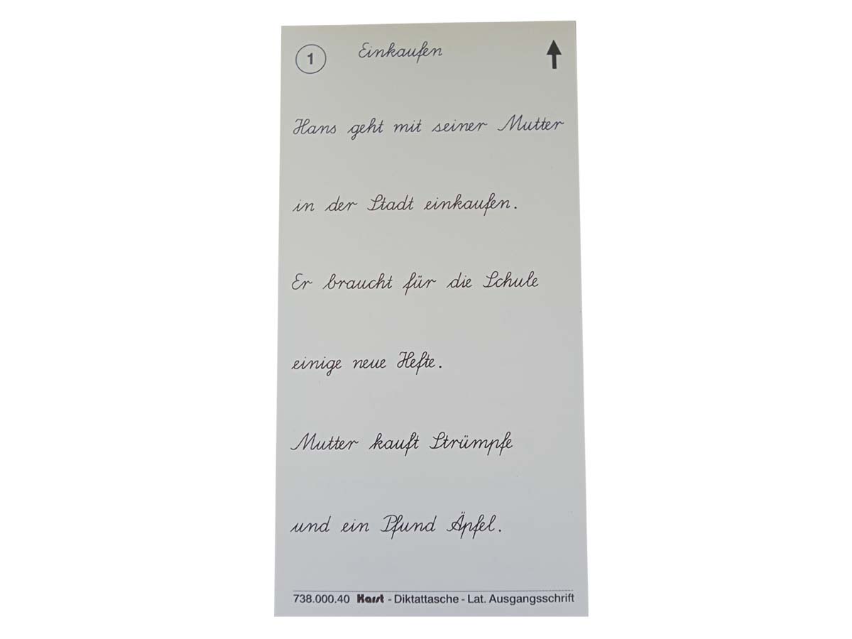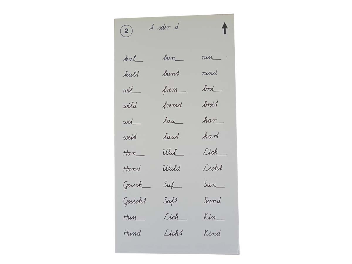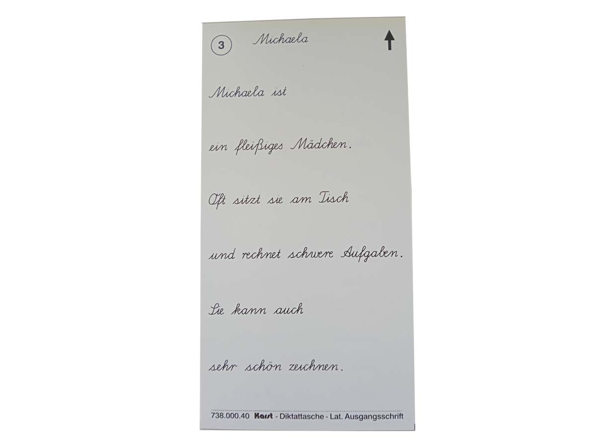 Wenn es die Karte weiter zieht wird der Text verdeckt. Das Kind schreibt den Text aus der Erinnerung ins Heft und zieht die Karte weiter. Der Text erscheint über der Abdeckung und das Kind vergleicht und kontrolliert seinen Text im Heft. Im Fenster steht jetzt bereits der nächste Text.