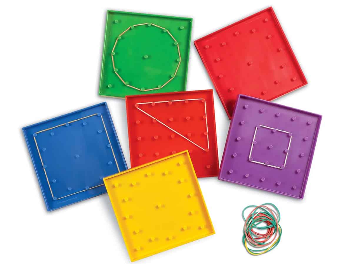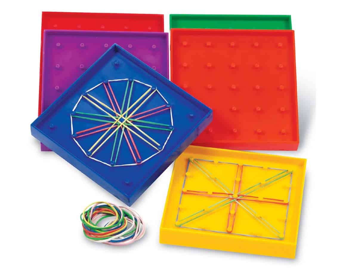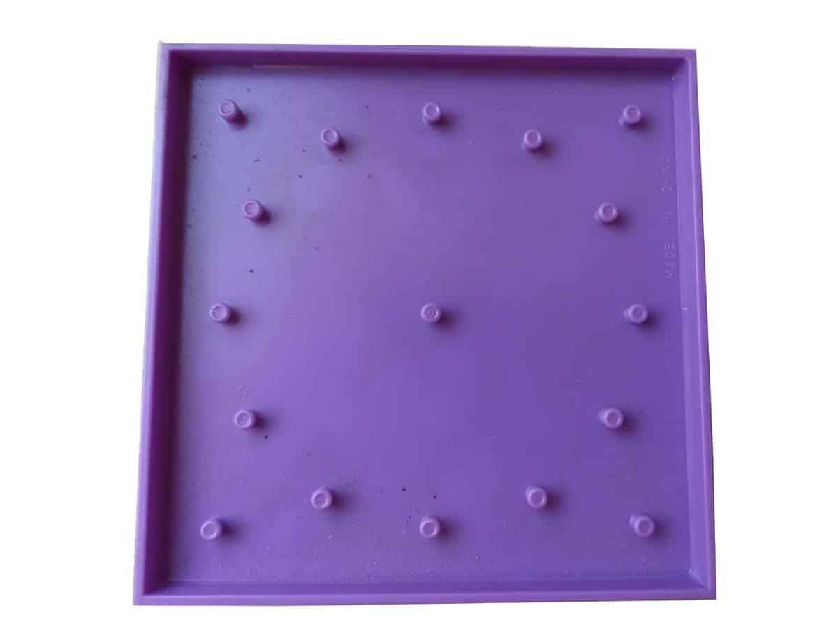 Es hat zwei verschiedene Arten von Gittern für eine Vielfalt von Aktivitäten. Eine Seite ist ein Standard mit 5 x 5 Stäben, die andere Seite ist eine kreisförmige Anordnung mit 12 Kreis-Stäben und 4 Radiuspflöcken.