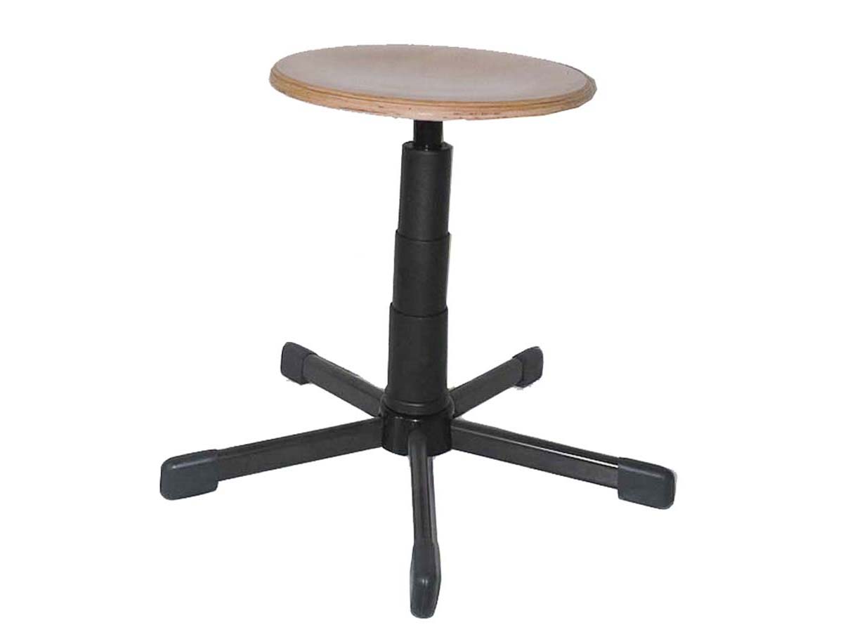 Sitz in Buche natur 35 cm Stufenlose Sitzhöhenverstellung mit Drehspindel von 42-62 cm Hocker mit Stahlfußkreuz und Kunststoffgleiter.
