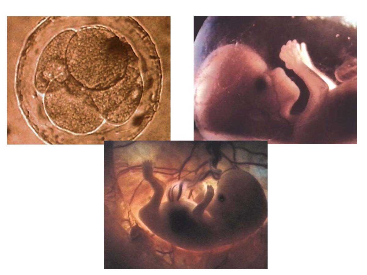 Beeindruckende Bilder dokumentieren die Vereinigung von Samenzelle und Eizelle, die Zellteilung, die Entwicklung des Embryos in den verschiedenen Schwangerschaftswochen und schließlich die Geburt.