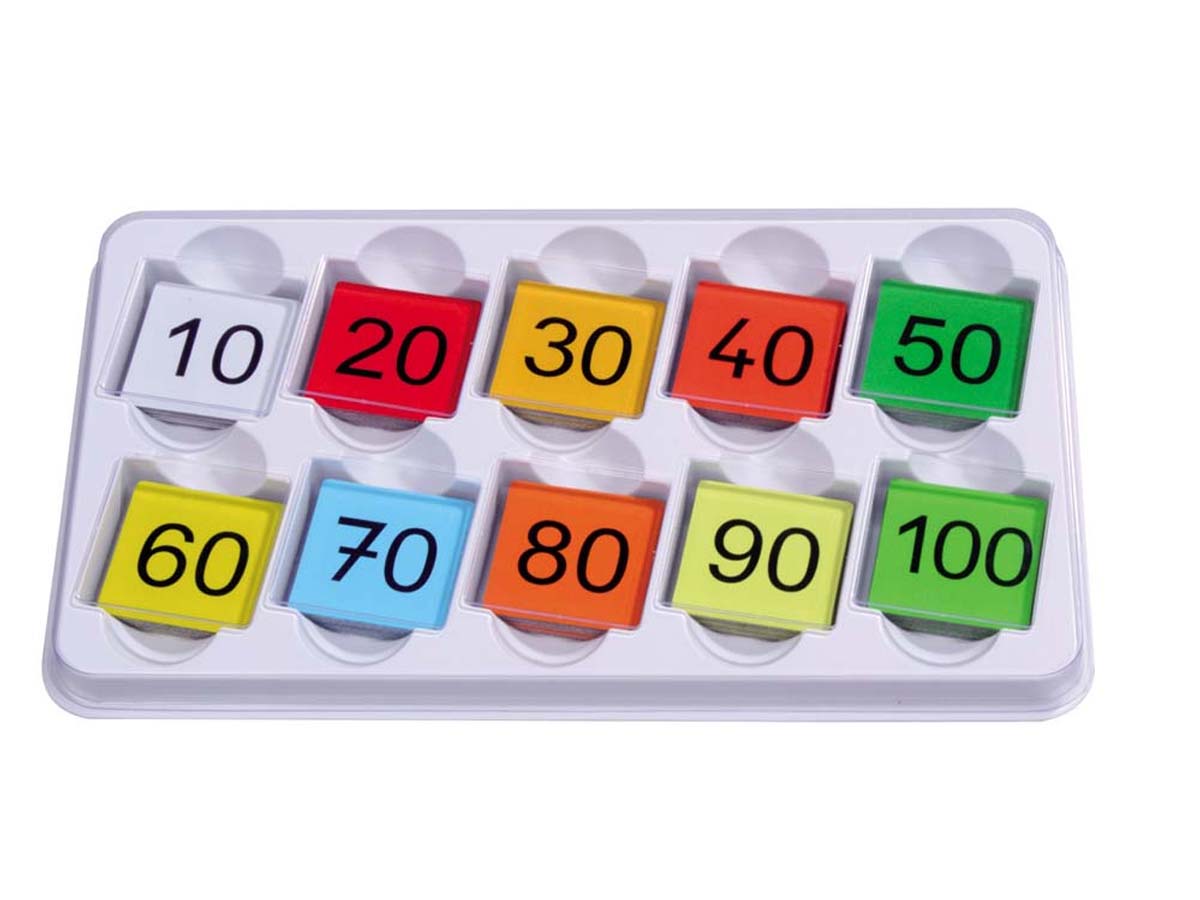 Die 100 Magnet-Kärtchen sind doppelseitig bedruckt mit 1 x 1 Aufgaben und auf der Rückseite mit Ergebnissen.