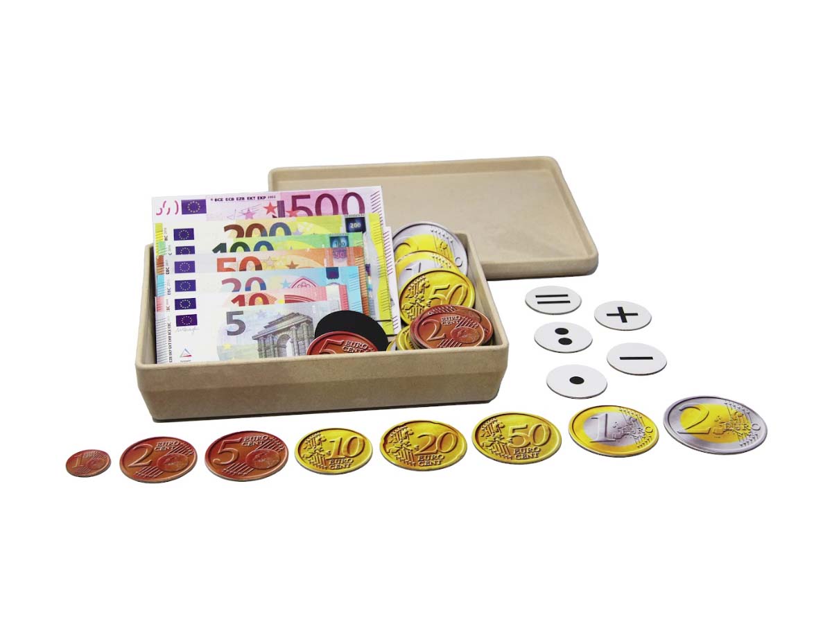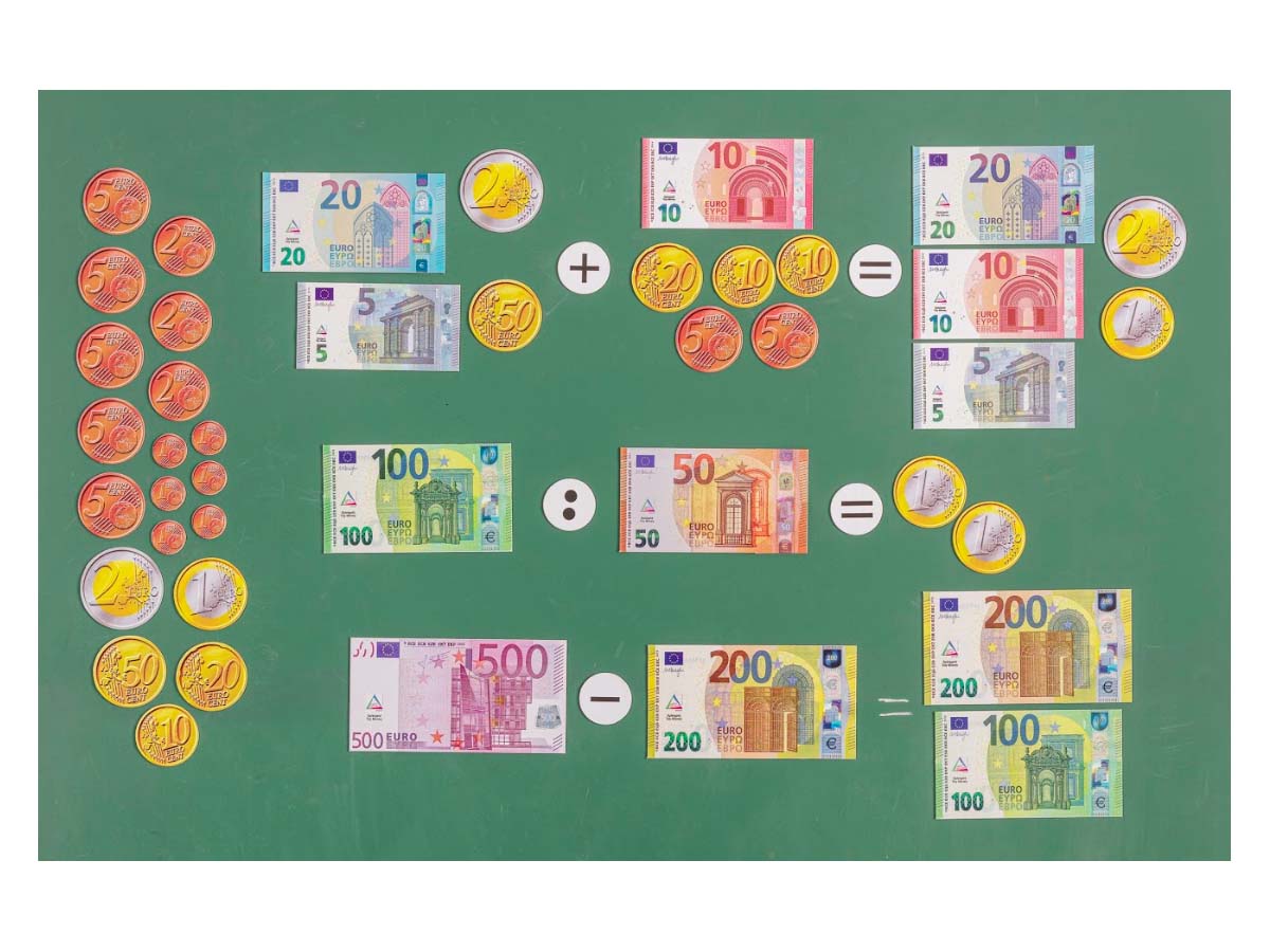 Größe: Scheine ca. 110% und Münzen ca. 300%, Rechenzeichen ø 4 cm
