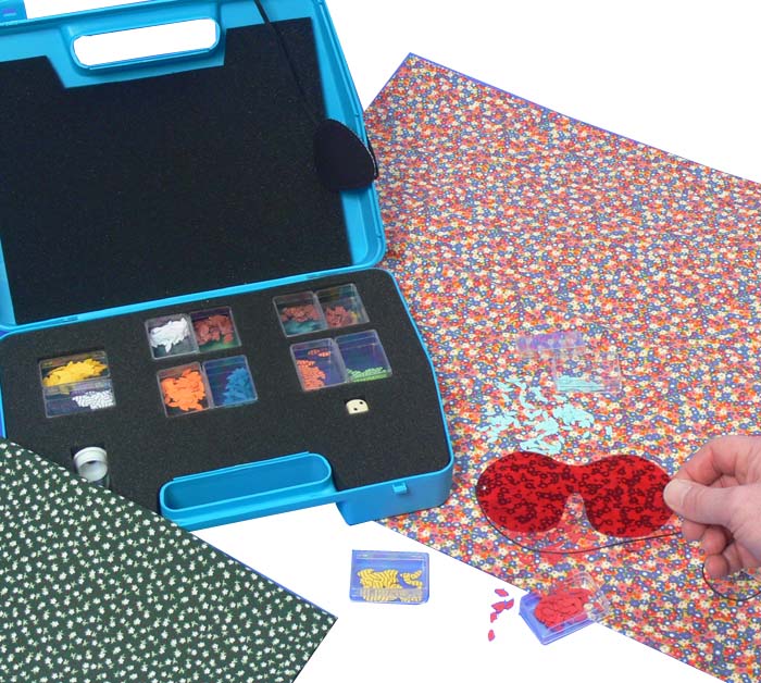 Schüler simulieren mit farbigen Chips auf ausgewählten „Umwelt“-Unterlagen die natürliche Auslese. Sie stehen sich als konkurrierende Räuber gegenüber. Ihre Beute (die bunten Chips), die sie schnellstmöglich einsammeln, wurden zuvor auf die Unterlage ausgestreut. Die Schüler erleben die farbabhängigen Überlebenschancen einzelner Individuen einer Population. Schon in der zweiten Generation entwickelt sich diese Auslese in klar erkennbarer Richtung.