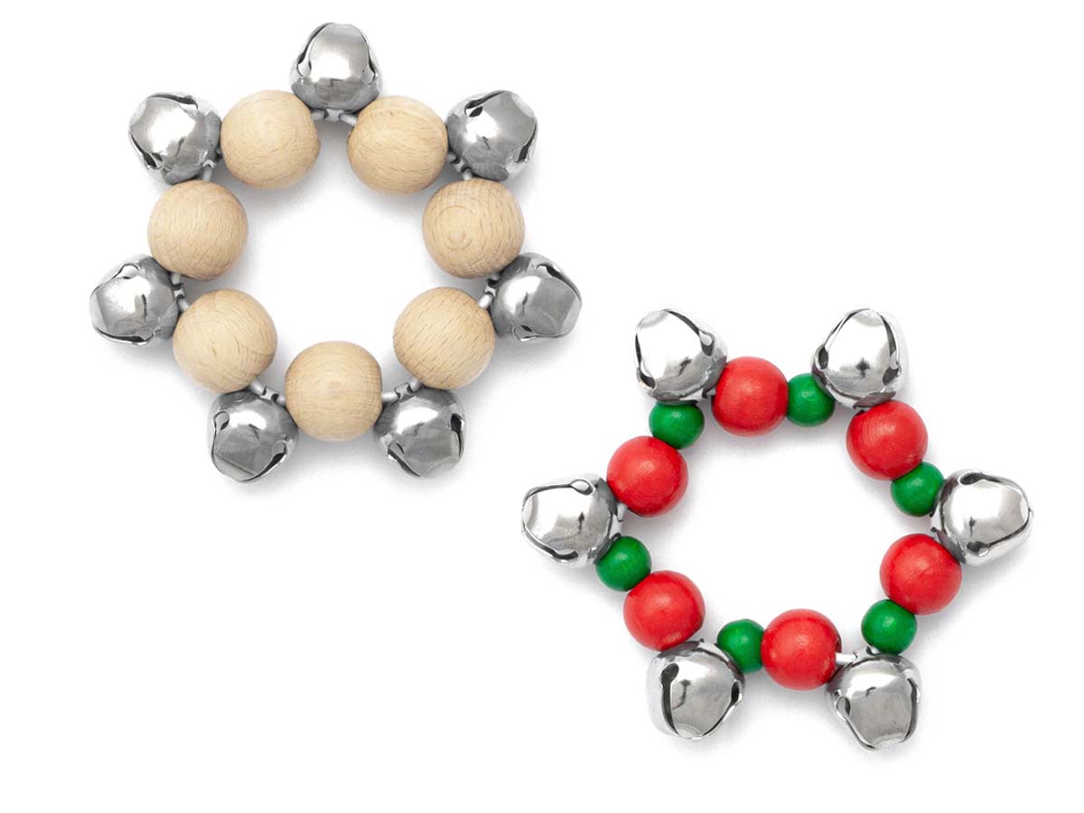 farbige Holzkugeln mit 6 Schellen, Naturholzkugeln mit 7 Schellen