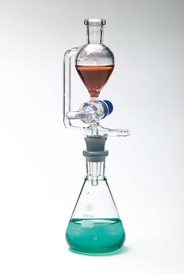 bestehend aus: 100 ml Erlenmeyerkolben, Tropftrichter mit Druckausgleich