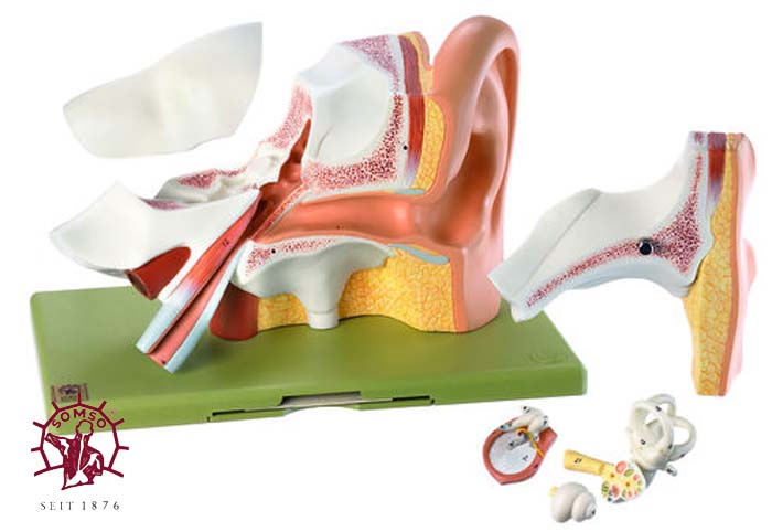 Felsenbeindecke und obere Wand des Gehörganges sind abnehmbar, Labyrinth zum Herausnehmen und Öffnen.