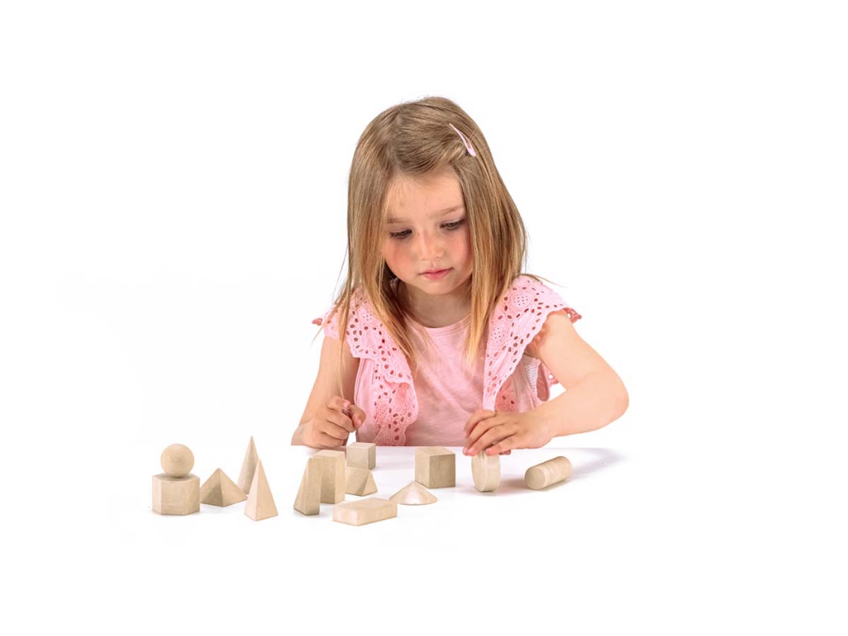 1 Quadratsäule, 1 Würfel (3 x 3 x 3 cm), 1 Quadratpyramide,  2 Rechtecksäulen, 2 dreieckige Säulen,