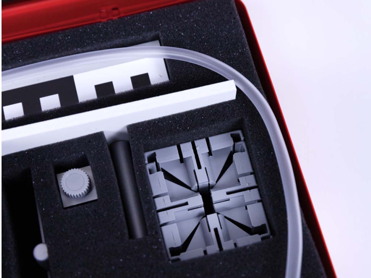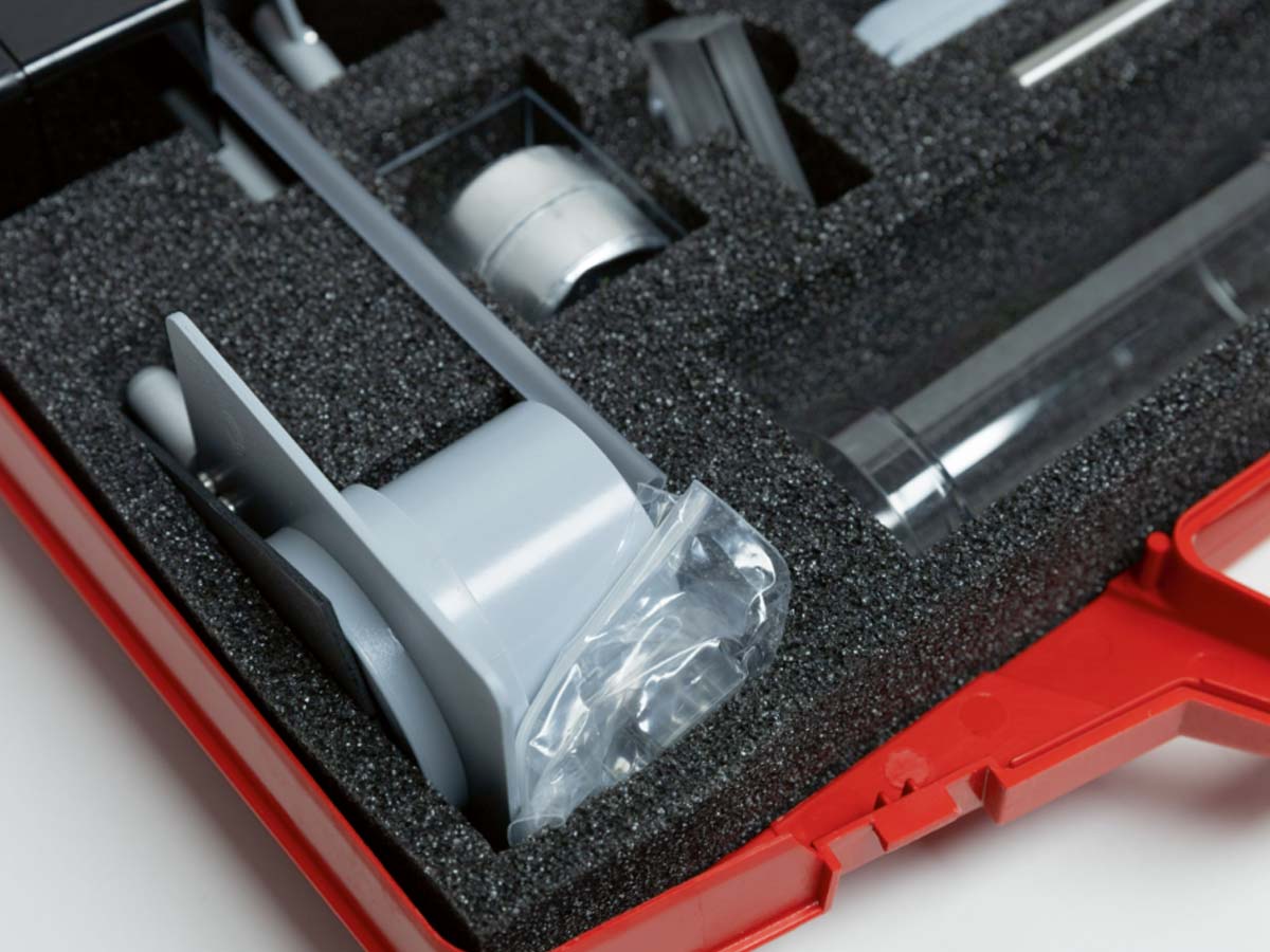 Im stabilen Transport- und Aufbewahrungskoffer (440 x 330 x 100 mm) mit geformter Schaumstoff-Einlage.