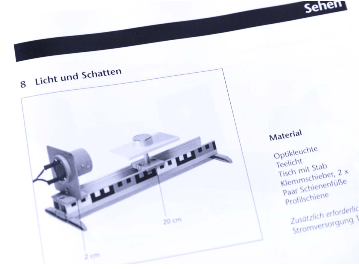 Der Gerätesatz wird mit einer ausführlichen Versuchsanleitung und Lehrerhandreichung geliefert. Die Versuchsanleitung enthält Kopiervorlagen mit der Beschreibung der Versuchsdurchführung und Fragen zu den Versuchen. In der Lehrerhandreichung sind die Antworten zu den Fragen aufgeführt.