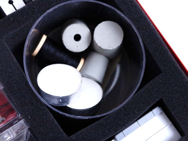 Im stabilen Transport- und Aufbewahrungskoffer (440 x 330 x 100 mm) mit geformter Schaumstoff-Einlage.