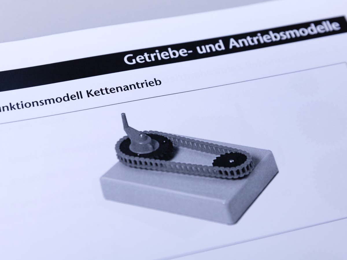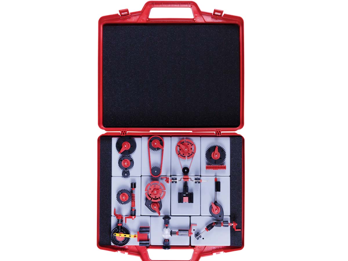 Die Modelle der wichtigsten Getriebe und Antriebe sind in einer didaktisch sinnvoll aufbereiteten Form zu einem Modellsatz zusammengefasst.