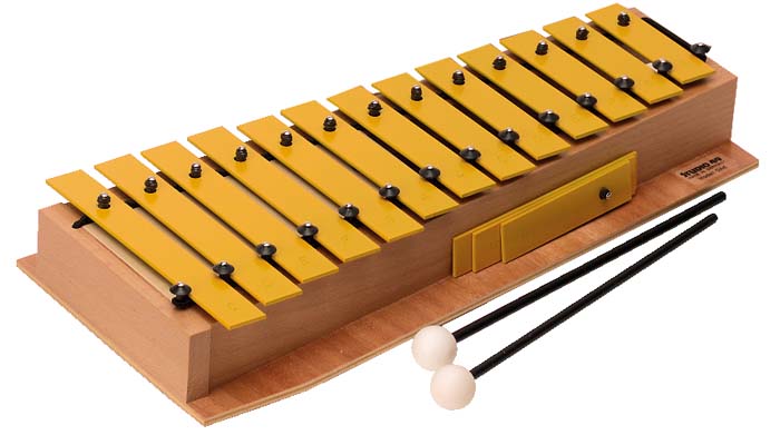 Neben einen Vollholz-Resonanzkasten besitzen die Glockenspiele Klangstäbe aus einem hochwertigem Material das zu einem ausgewogenen und vollen Klangbild beiträgt. Glockenspiele mit auswechselbaren Klangstäben in C-Dur mit fis- und b- Stäben.
