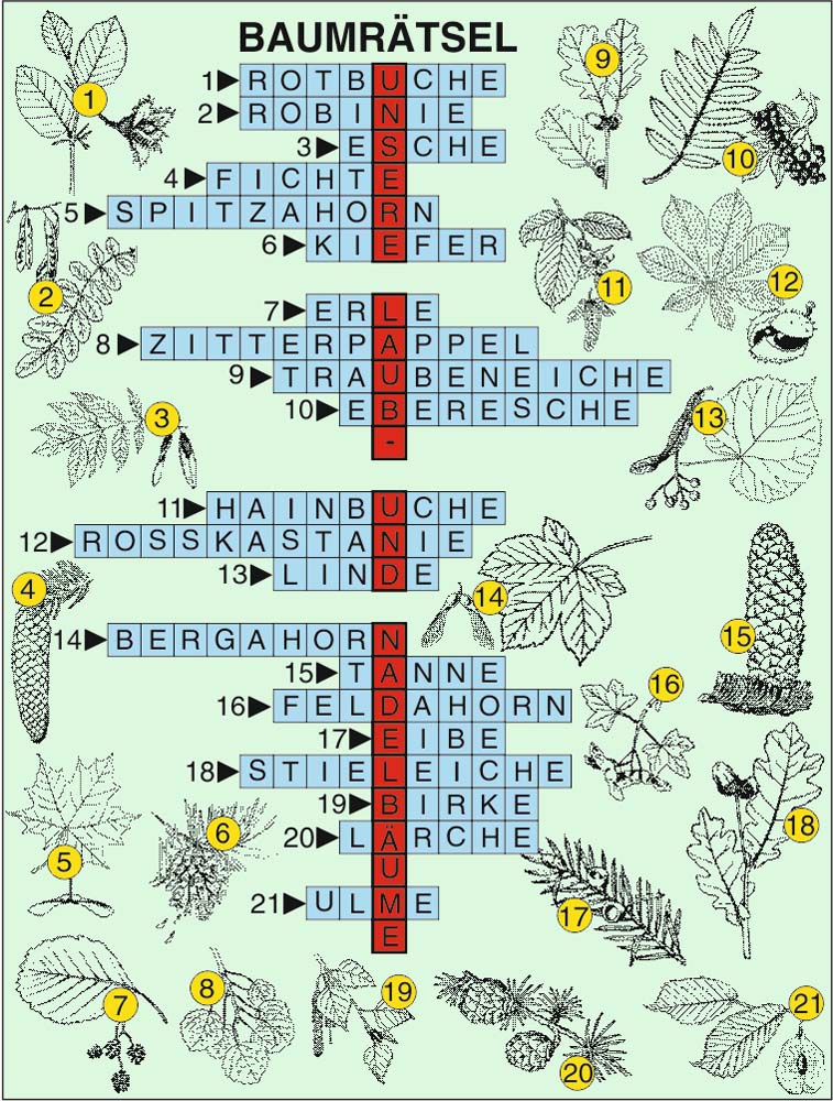 – Rätsel: Bäume und Sträucher: 4 Folien, 2 verschiedene Kopiervorlagen