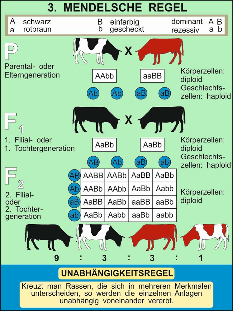– 3. Mendelsche Regel: Unabhängigkeitsgesetz: 6 Folien, 7 versch. Kopiervorlagen