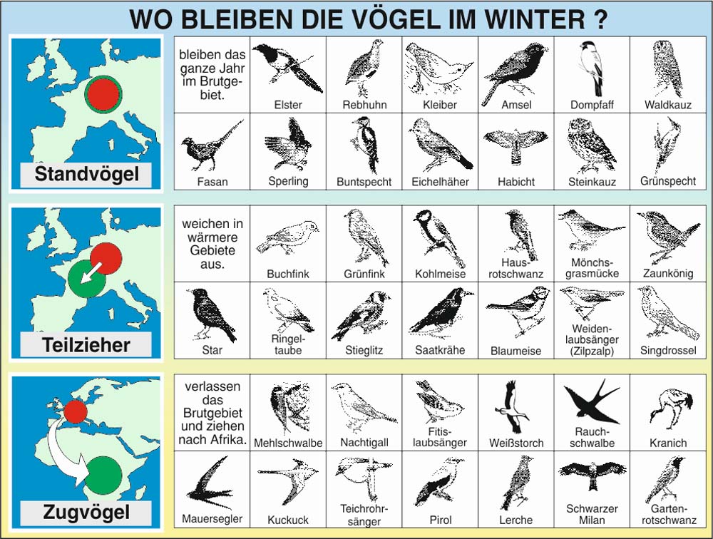 – Standvögel – 4 Folien, 3 Kopiervorlagen