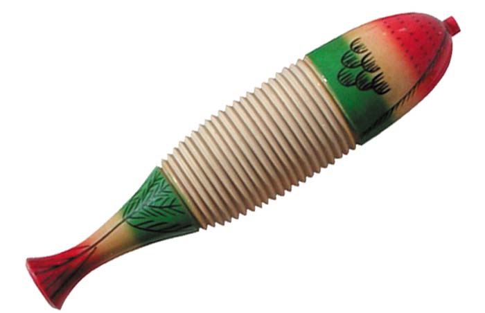Stichworte: Rhythmik-Instrumente, Musik, Guiro - Tonblock, Guiro - Fischform