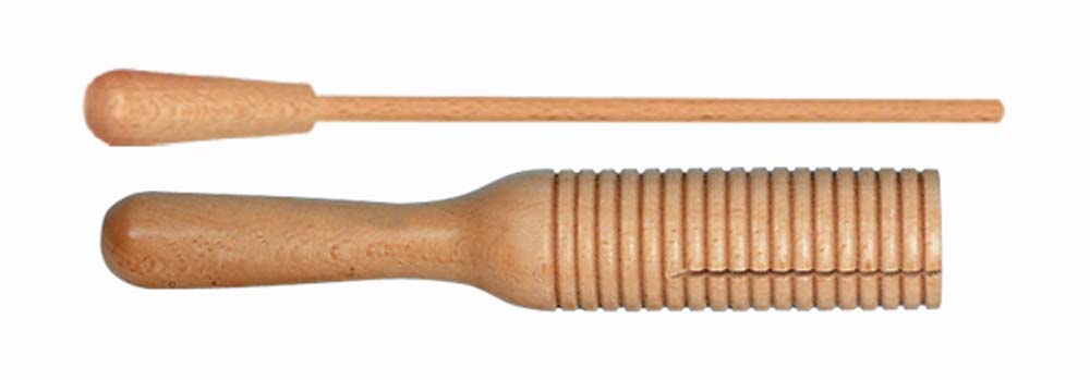 Maße: 20 cm lang, ø 3,5 cm, gerillt, mit Scraper, Farbe: Buche natur