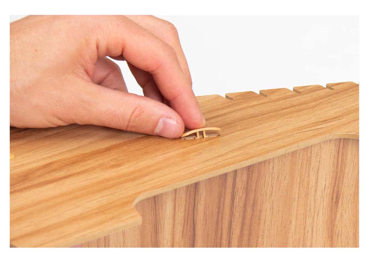 Die einzelnen Teile lassen sich mit nur wenigen Handgriffen zusammensetzen und mit den Kunststoffclips fixieren.