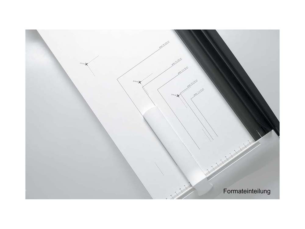 Gängige Fotoformate und DIN-Formateinteilung auf dem Schneidetisch ermöglichen präzises, rationelles Schneiden.