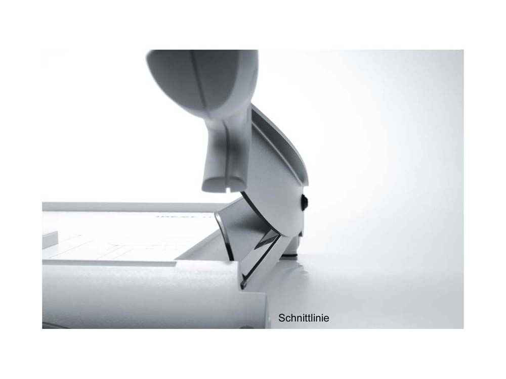 Durch den Schnittandeuter an der Anpressschiene wird die Schnittlinie auf der ganzen Schnittlänge präzise angezeigt.