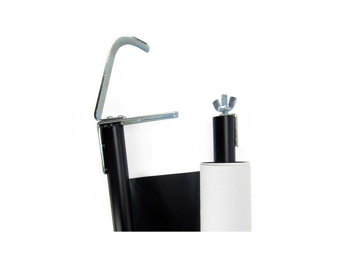 Für kleine Karten und Rollbilder mit Holzstäben bis 25 mm Haken mit Führungsgabel, in der das Gegenstück nach Aufrollen des Rollbilds sicher fixiert wird. Dadurch sind Bindebänder entbehrlich.