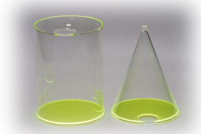 Die Körper sind hergestellt aus Plexiglas, ein besonders hochwertiger Kunststoff.