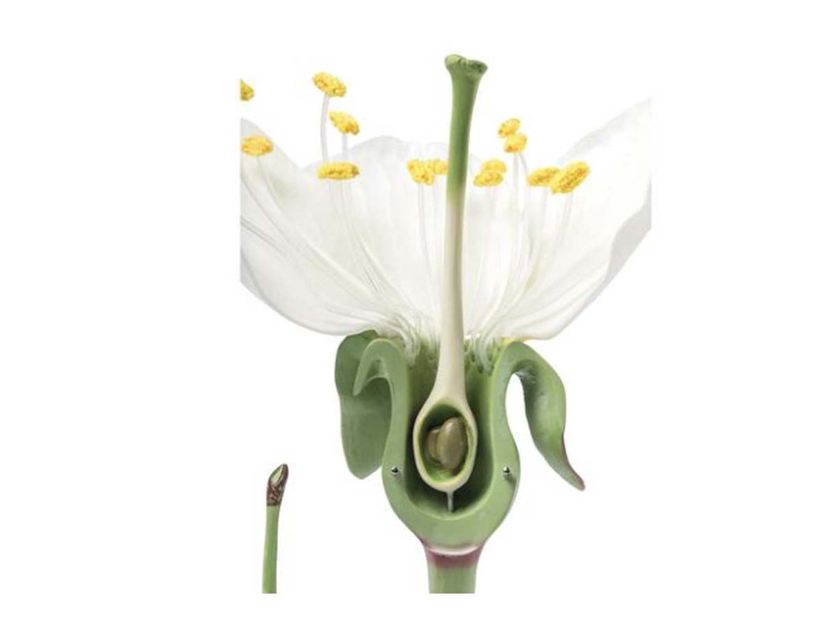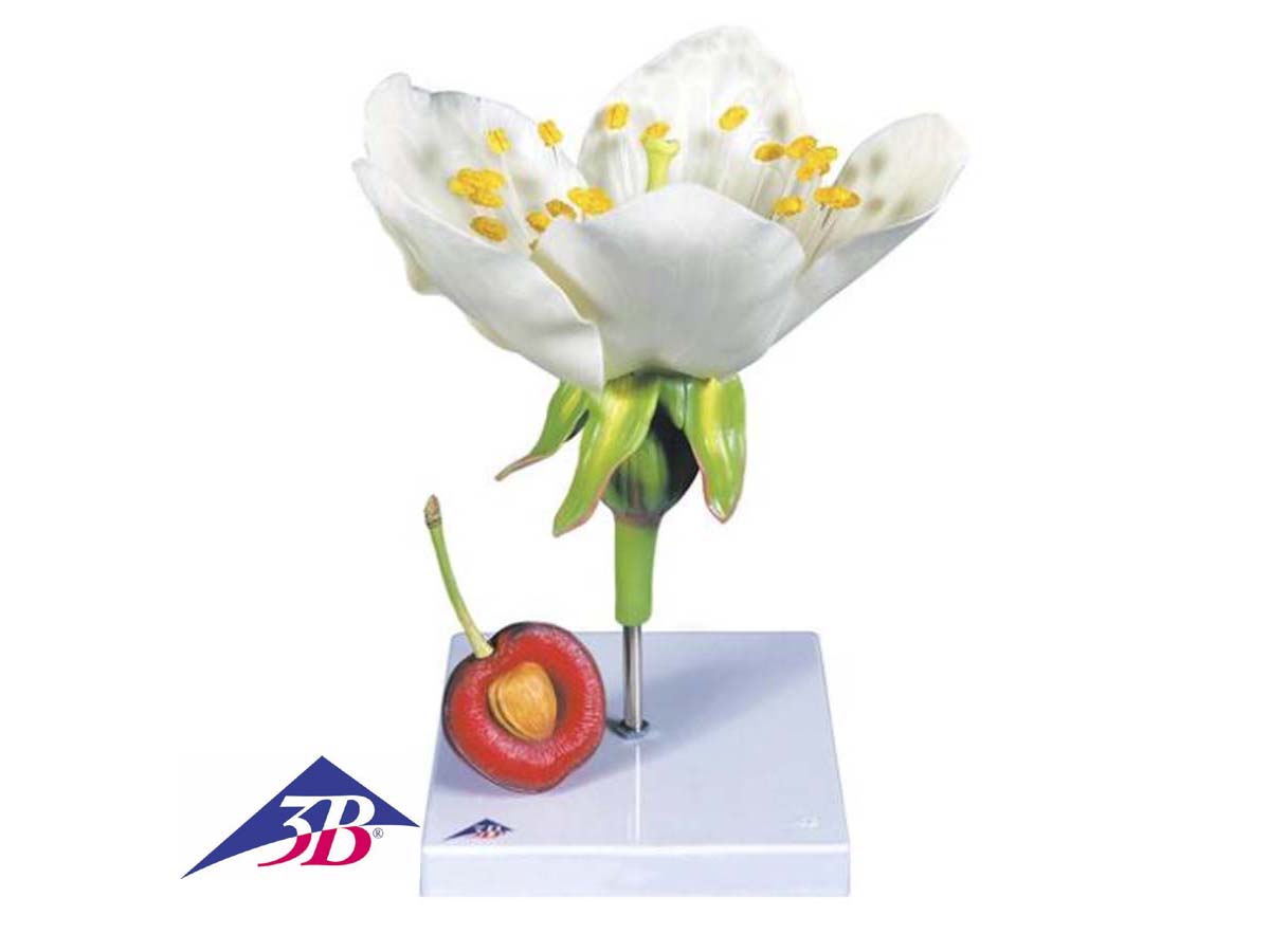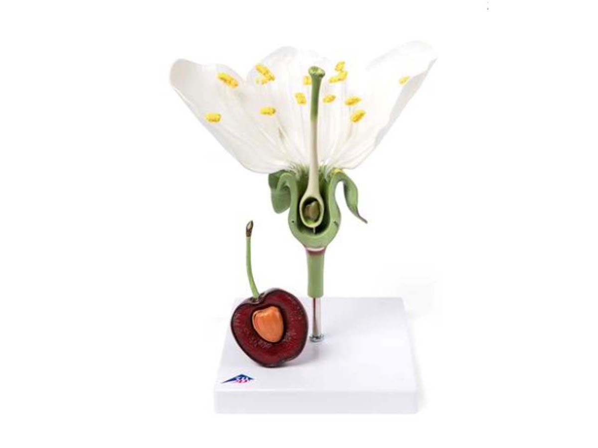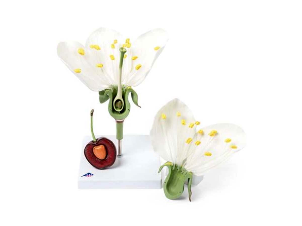 Dieses anschauliche 3-teilige Modell zeigt die Blüte der Vogelkirsche in 7-facher Vergrößerung sowie eine Kirschfrucht in 3-facher Vergrößerung.