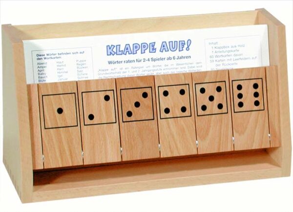 Hinter den Klappen der Spielbox verbirgt sich ein Begriff, der erkannt werden soll.