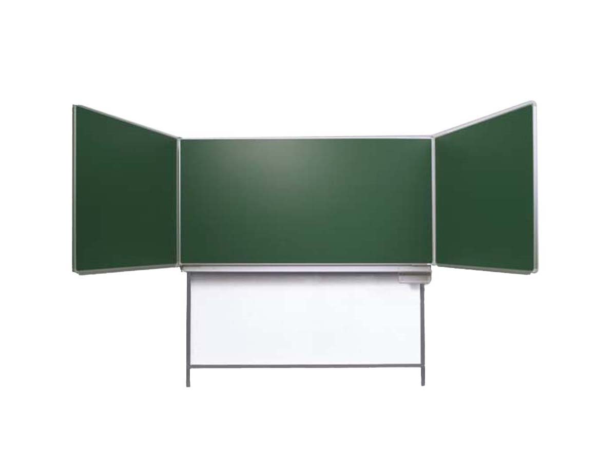 Die Schultafel mit großer Mittelfläche und zwei Klappflügeln – dadurch stehen ingesamt fünf Tafelflächen zur Verfügung.